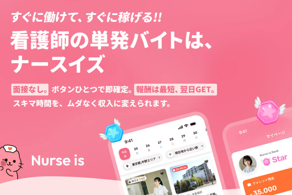 看護師の単発バイトアプリ「nurse is(ナースイズ)」の評判は?口コミ・メリットを徹底解説!